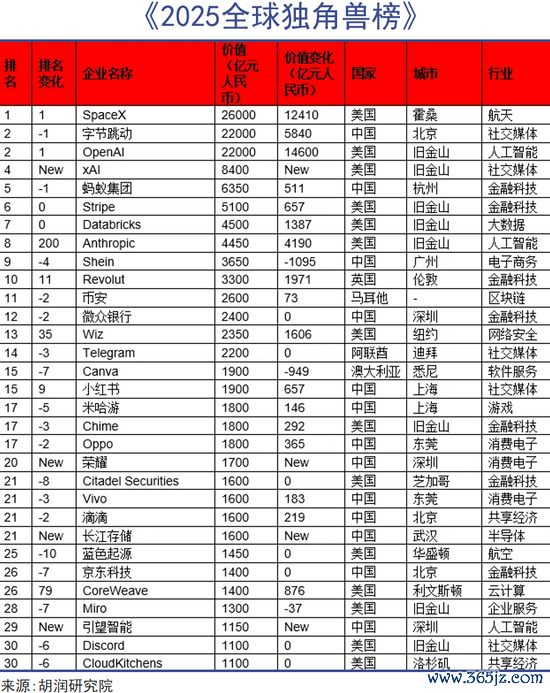根据胡润发布的《2025全球独角兽榜》,中美两国独角兽数量超过七成,而前30名中无一家德国或日本企业。估值最高的德国独角兽是排在39名的Celonis,前100名中竟然只有一家日本企业。